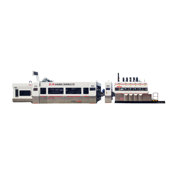高速水墨印刷粘箱打包聯(lián)動線與高速水墨印刷機聯(lián)接、可實現(xiàn)印刷、開槽、模切、涂膠、折疊、校正、計數(shù)、分垛、打包、輸出等功能一體化。